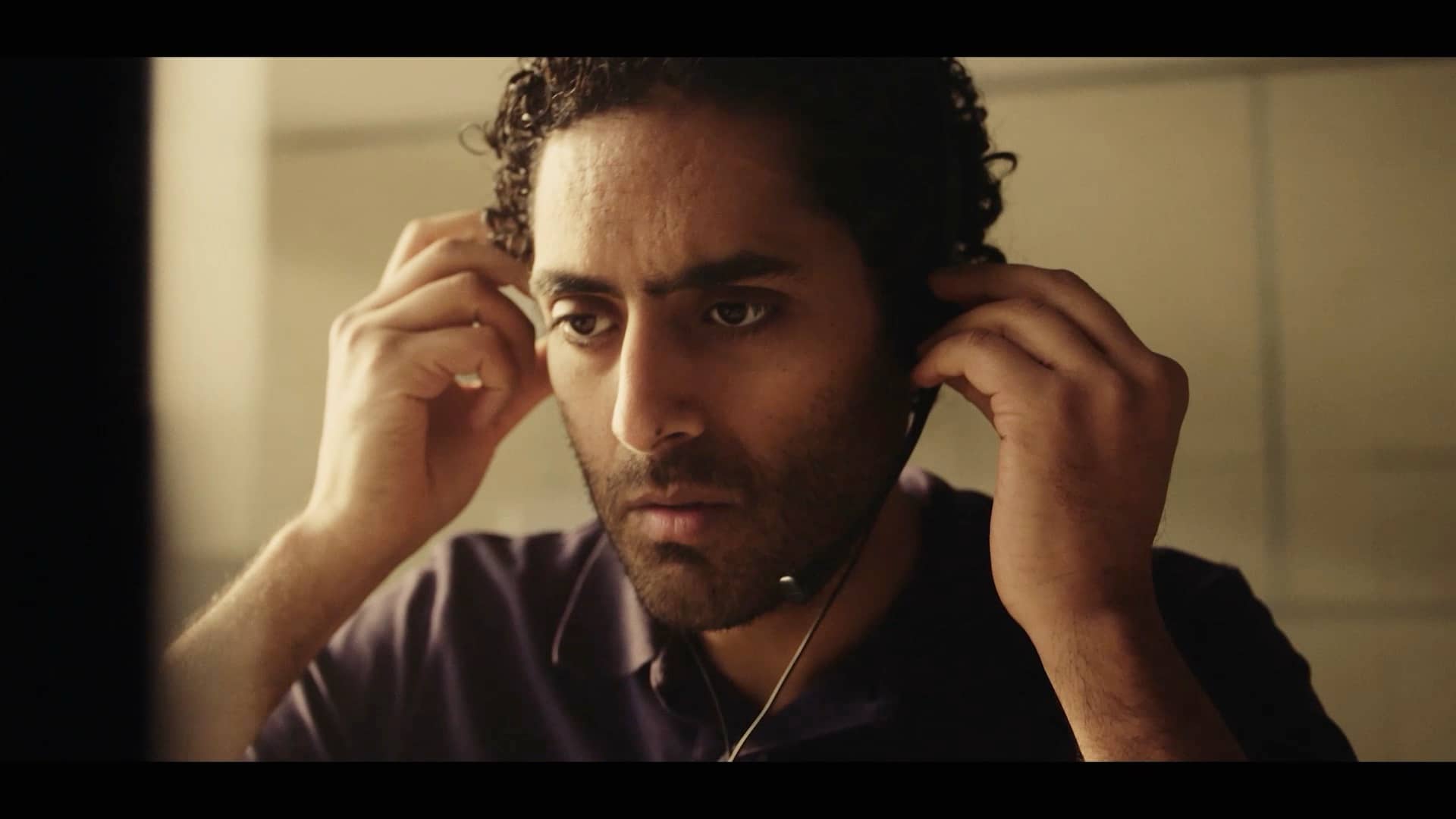 Amit neemt een slok energy drink. Hij zet een headphone op en drukt op een knop op zijn toetsenbord. Een ringtone gaat over.