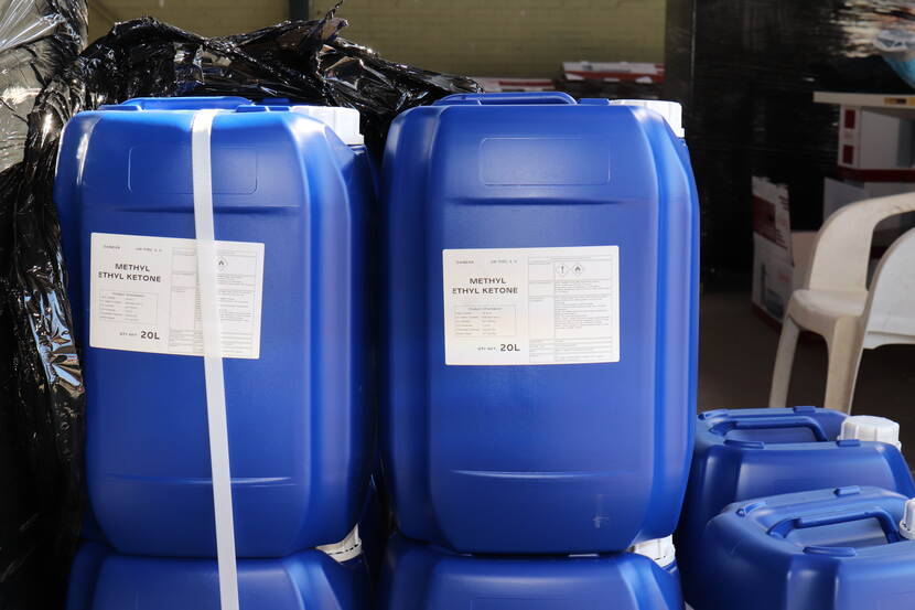 In de keukenkastjes ontdekten de forensische rechercheurs ongeveer 6 kilo cocaïnebase. In verschillende mengemmers zat nog eens ongeveer 13 kilo cocaïne hydrochloride, ook wel snuifcocaïne genoemd. De inbeslaggenomen drugs, chemicaliën en het verpakkingsmateriaal zijn nog dezelfde dag op 25 mei onder toezicht van de politie in de vuilverbranding vernietigd.