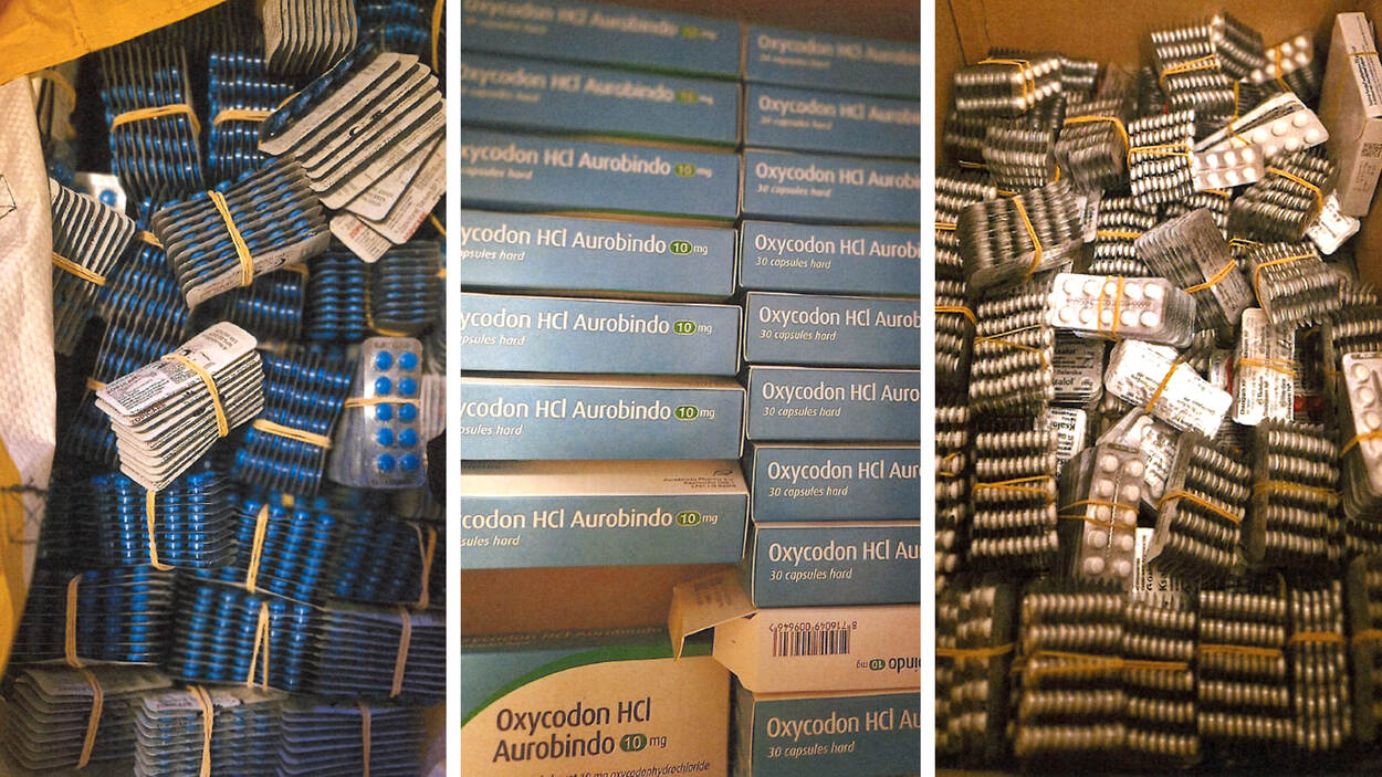 De politie nam tienduizenden doosjes en strips in beslag met honderdduizenden pillen met uiteenlopende stoffen. Daarnaast is bericht uitgestuurd naar iedereen van wie de politie kon achterhalen dat ze bij deze verdachten namaak oxycodon hadden besteld.