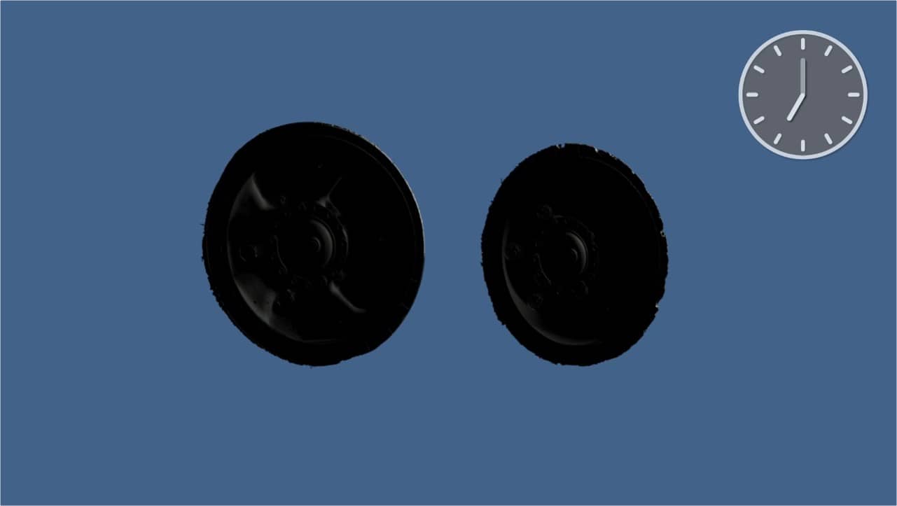 De afwijkende combinatie van loopwielen aan de rechterzijde van de TELAR wordt in het dossier kenmerk 13 genoemd. Dit is te zien op de video van de TELAR die volgens het onderzoek in Torez is opgenomen. Deze video is in 2015 aan het onderzoeksteam verstrekt. Ter bescherming van de bron hebben Nederlandse digitale rechercheurs een gedeelte van de video afgeschermd, zodat de precieze locatie in Torez en identificerende gegevens niet meer te zien zijn. De rechter-commissaris kent de volledige opname en heeft toestemming gegeven voor deze gedeeltelijke afscherming. In de afgeschermde versie van de video zijn de opgenomen voertuigen - de TELAR, Volvo-truck en dieplader, een donker busje en een militaire jeep - goed te zien. Wij tonen nu een fragment uit die video. Te zien is dat alle loopwielen van de TELAR aan de (voor de TELAR) rechterzijde zogenaamde spaakwielen zijn, behalve het tweede loopwiel van achteren: dat is een loopwiel zonder spaken, in het dossier ook wel een ‘dicht’ loopwiel genoemd.