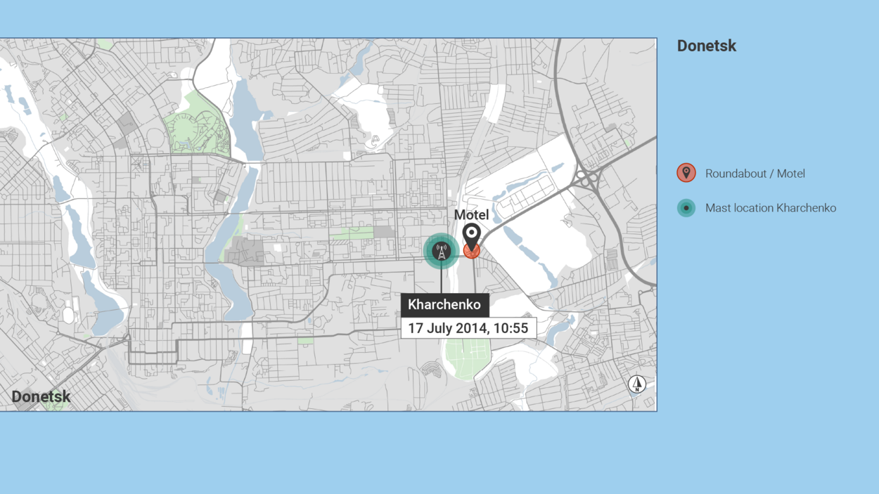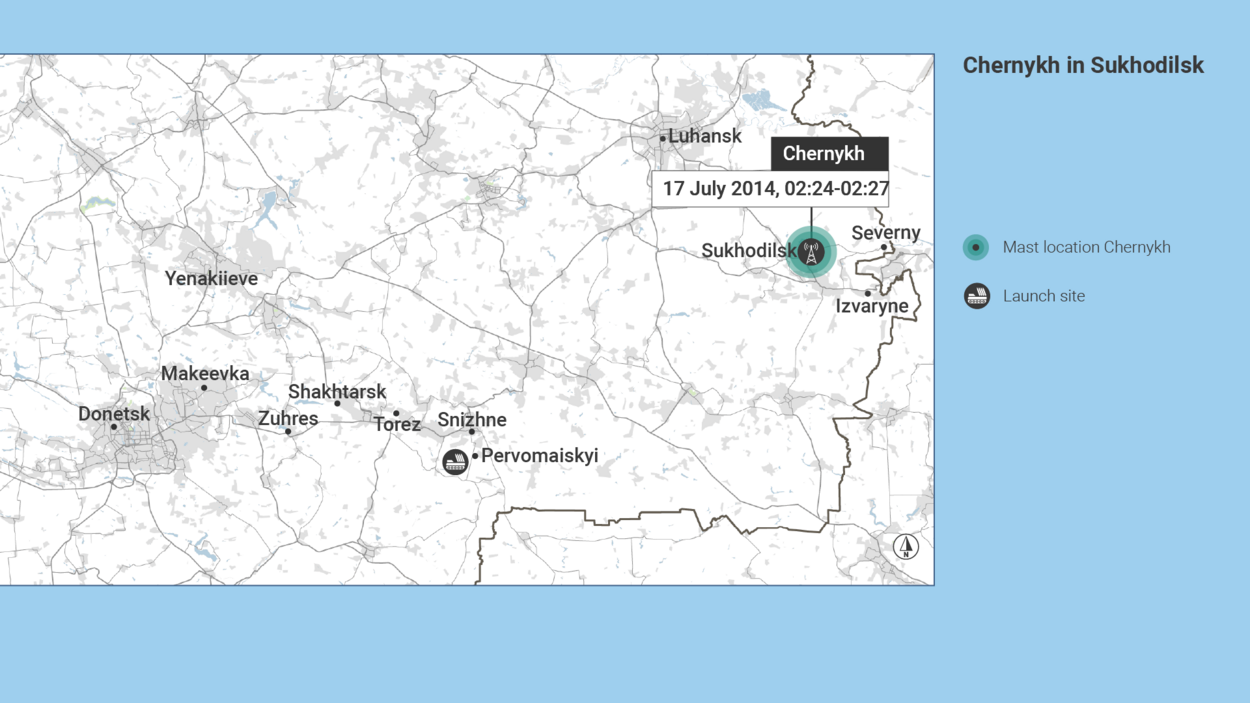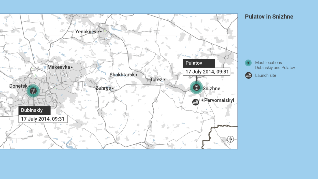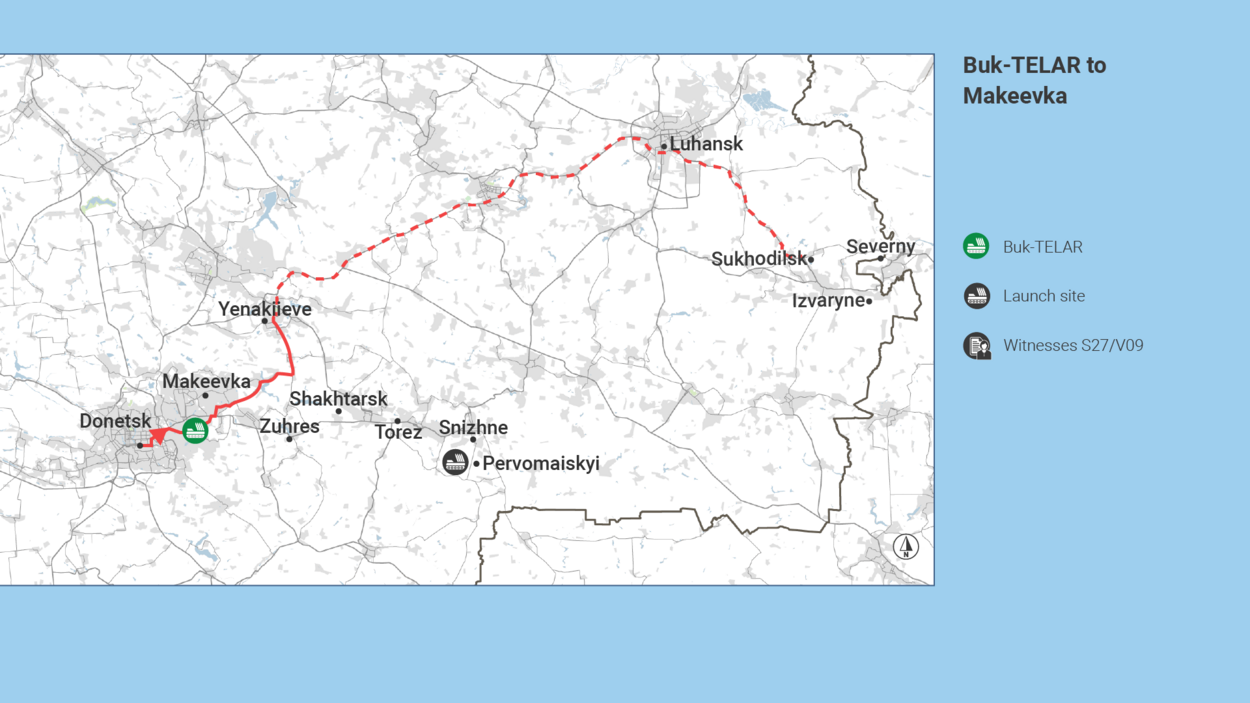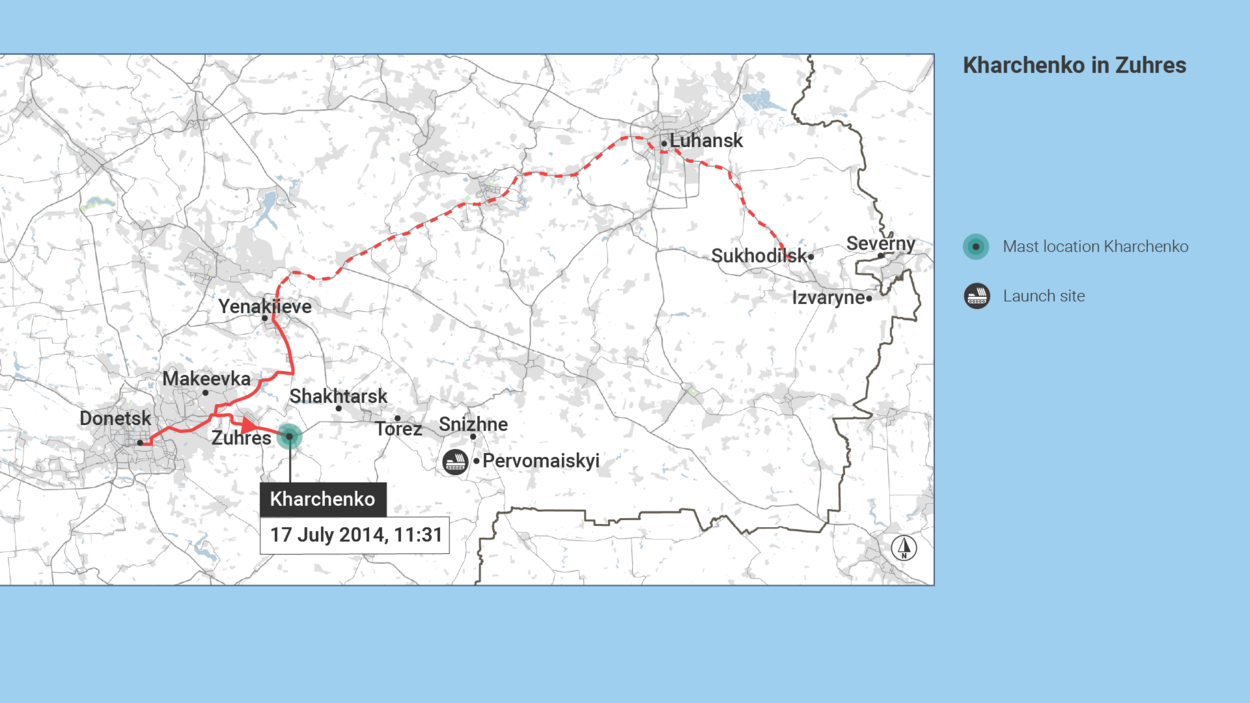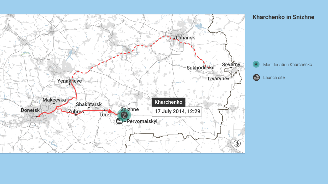 Duizenden kilometers verderop, in het oosten van Oekraïne, bereiden de vier mannen die hier terecht staan zich voor op een nieuwe dag vol geweld. Tanks worden aangevoerd, verkenners gepositioneerd. In een gewapend konvooi rijdt een witte vrachtwagen van Donetsk naar Snizhne. Onder een camouflagenet bevindt zich een installatie met raketten, een Buk-TELAR. Vandaag hebben de separatisten een troef in handen.