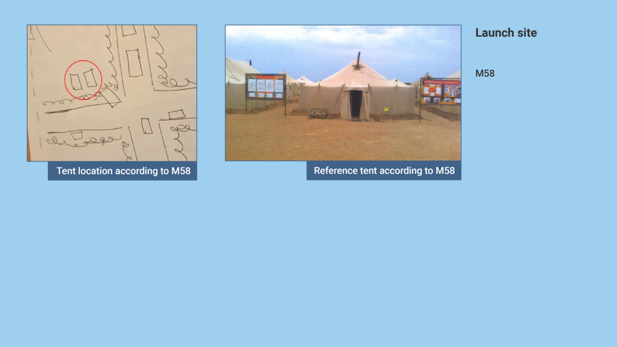 Op 9 februari 2019 stuurt M58 een foto van een soortgelijke tent aan het opsporingsteam met de opmerking: “Wij hadden twee van zulke tenten bij die blockpost!” Het gaat om een ronde, lichtgekleurde legertent. Precies op de plek waar M58 twee tenten heeft getekend, zijn op de satellietbeelden van 20 en 21 juli 2014 twee witte ronde plekken te zien, terwijl deze niet zichtbaar zijn op het beeld van 16 juli 2014.
