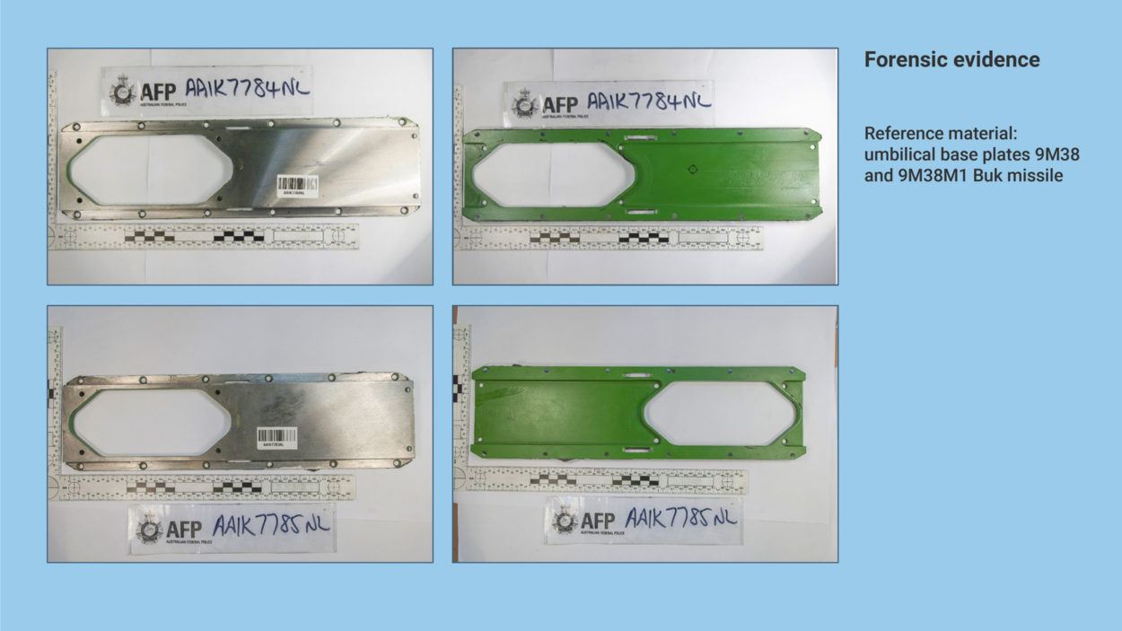 In relatie tot de groene en zilverkleurige plaat van de prop uit de sponning concludeert de AFP dat deze oorspronkelijk één geheel hebben gevormd en dat de uiterlijke kenmerken van deze prop overeenkomen met een specifiek deel van de grondplaat van zowel de 9M38, als de 9M38M1 referentieraket.