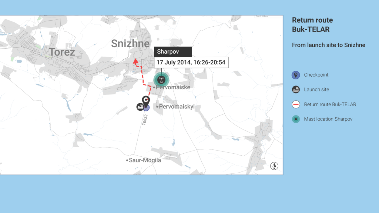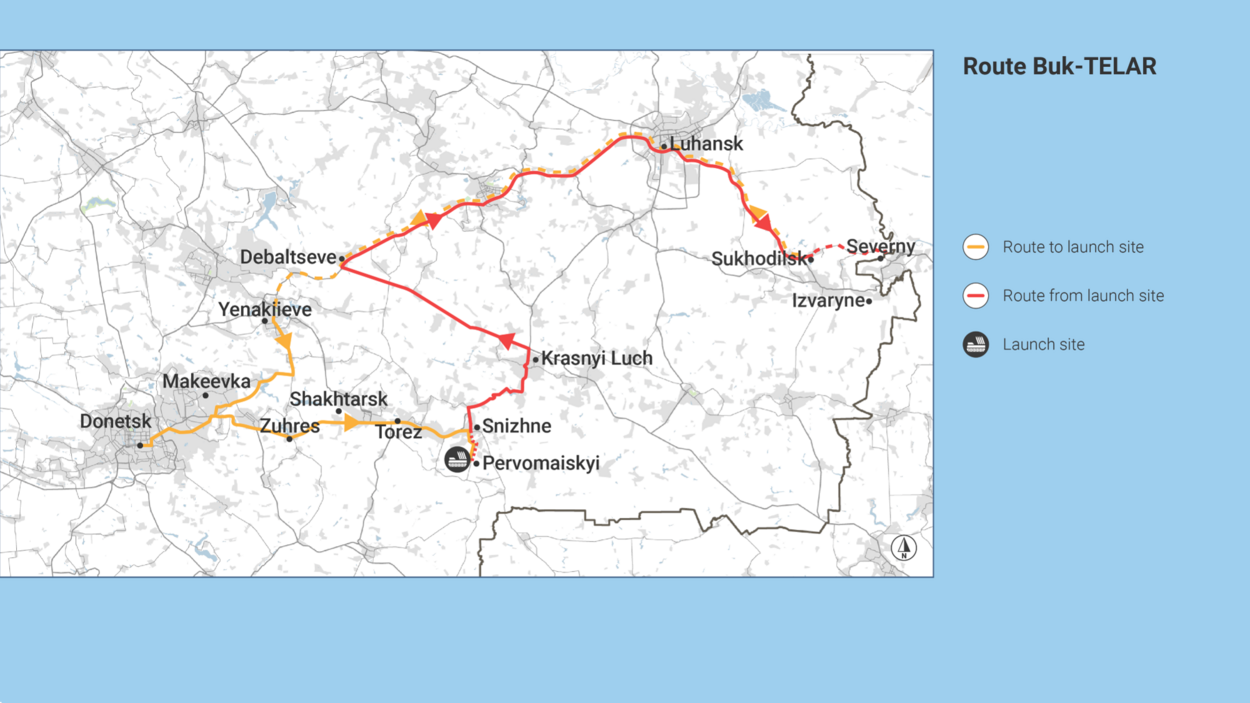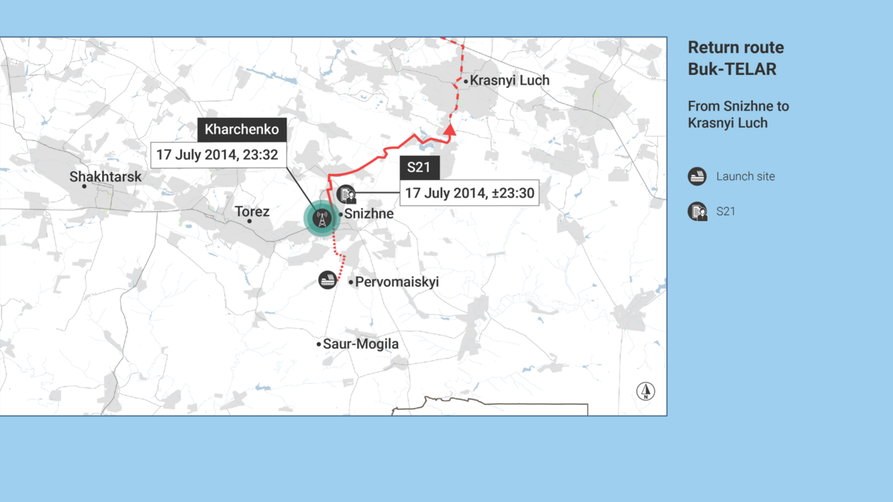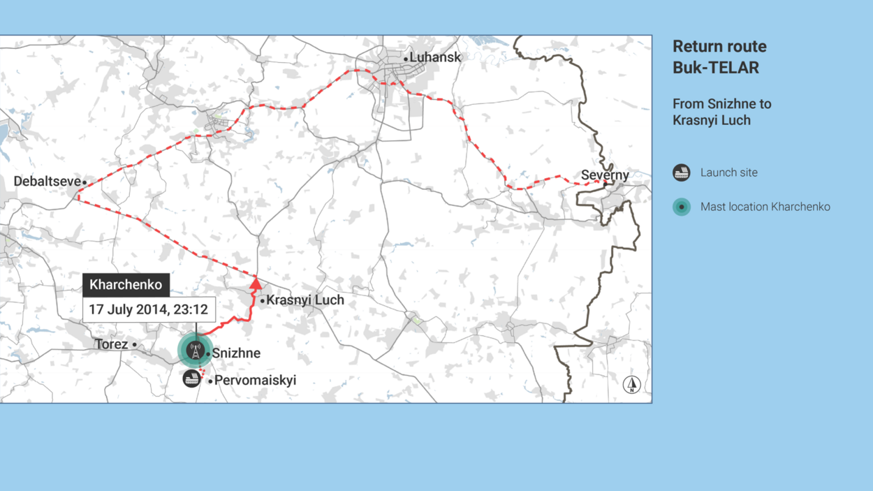 De Buk-TELAR is dus in opdracht en onder begeleiding van de verdachten vervoerd naar de afvuurlocatie in de buurt van Pervomaiskyi. Vanaf dat moment wordt het stil op de tap van Kharchenko: hij is vanaf 14:10 uur niet meer te horen in tapgesprekken. En ook Pulatov horen we niet meer na 13:36 uur. Wel volgt uit de historische verkeersgegevens van zijn telefoonnummer dat eindigt op -511 dat hij tussen 15:48 en 16:31 uur zendmasten aanstraalt in Pervomaiske, dat vlakbij Pervomaiskyi ligt. Verder is er dus radiostilte. Toch heeft het onderzoek veel informatie opgeleverd over wat er op de afvuurlocatie is gebeurd.