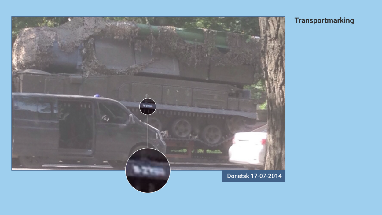 Dit spoor is ruim 3 meter breed en loopt vanaf de bosrand een stukje het veld in. Het onderstel van een TELAR is 3,25 meter breed. Volgens de eerder genoemde beeldanalist van het ministerie van Defensie is het spoor op het oog te breed voor een maaivoertuig en wijst het op een rupsvoertuig dat vermoedelijk vanuit de bossen het veld oprijdt en via hetzelfde spoor weer terugrijdt.