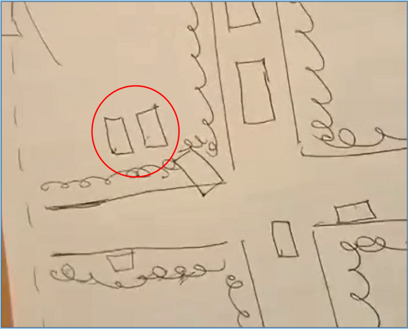 Van de verklaringen van M58 heeft de rechtbank het nodige voorgehouden. In aanvulling hierop merkt het Openbaar Ministerie op dat M58 op 12 februari 2019 een video heeft gestuurd naar het onderzoeksteam, waarop te zien is dat hij de situatie ter plaatse tekent. Hoewel hij later twijfelt of er 1 of 2 tenten waren, tekent hij dan nog 2 tenten. Een still van die video tonen wij nu.