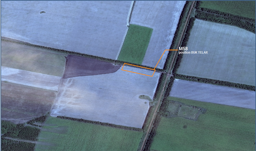 Uw rechtbank wees er terecht op dat M58 wisselend verklaart over de locatie waar hij de Buk TELAR in het veld zou hebben zien staan. Het Openbaar Ministerie heeft dit gevisualiseerd, door die verschillende locaties te omkaderen en op een satellietfoto te plotten. Dat zien we hier.