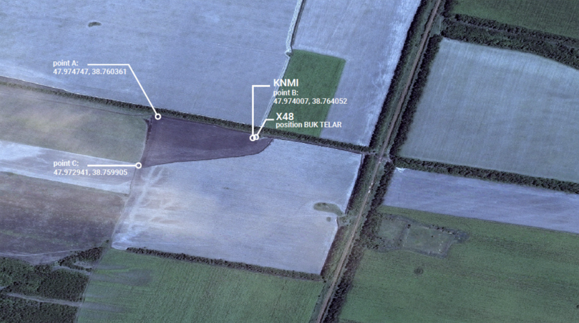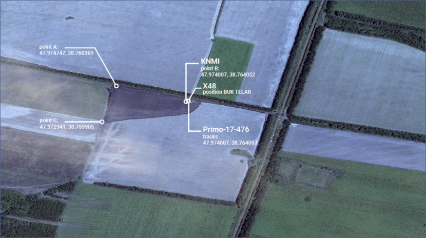 De locatie waar X48 de Buk TELAR heeft zien afvuren, de locatie waar het KNMI het beginpunt van de brand heeft vastgesteld en de locatie waar de beeldspecialist tracksporen het veld in ziet gaan, liggen heel dicht bij elkaar.