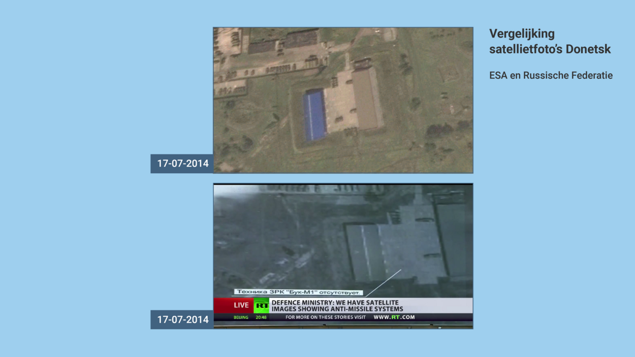 Het onderzoeksteam heeft de European Space Agency (ESA) gevraagd onderzoek te doen naar satellietbeelden van deze locaties. De resultaten daarvan zijn aan het dossier toegevoegd. ESA heeft een satellietfoto aangeleverd van 17 juli 2014 van de basis ten noordwesten van Donetsk. Die geeft een ander beeld dan de Russische satellietfoto. Het verschil is duidelijk: de Buk-TELAR die volgens de Russische Federatie op de foto van 17 juli 2014 is verdwenen, staat op de satellietfoto van ESA nog op dezelfde plaats.