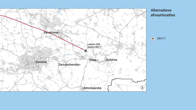 Uitgaand van het gebruik van een Buk-systeem, is onderzocht vanaf welke afvuurlocatie MH17 is neergeschoten. Vanaf het begin van het onderzoek zijn meerdere locaties onder de loep genomen. Eén daarvan is op basis van de bevindingen van het onderzoek aangewezen door het JIT als afvuurlocatie en in het dossier beschreven als het hoofdscenario. Dat is een locatie bij Pervomaiskyi. Er is echter ook onderzoek gedaan naar mogelijke andere locaties. Dat deel van het onderzoek zullen we nu bespreken.