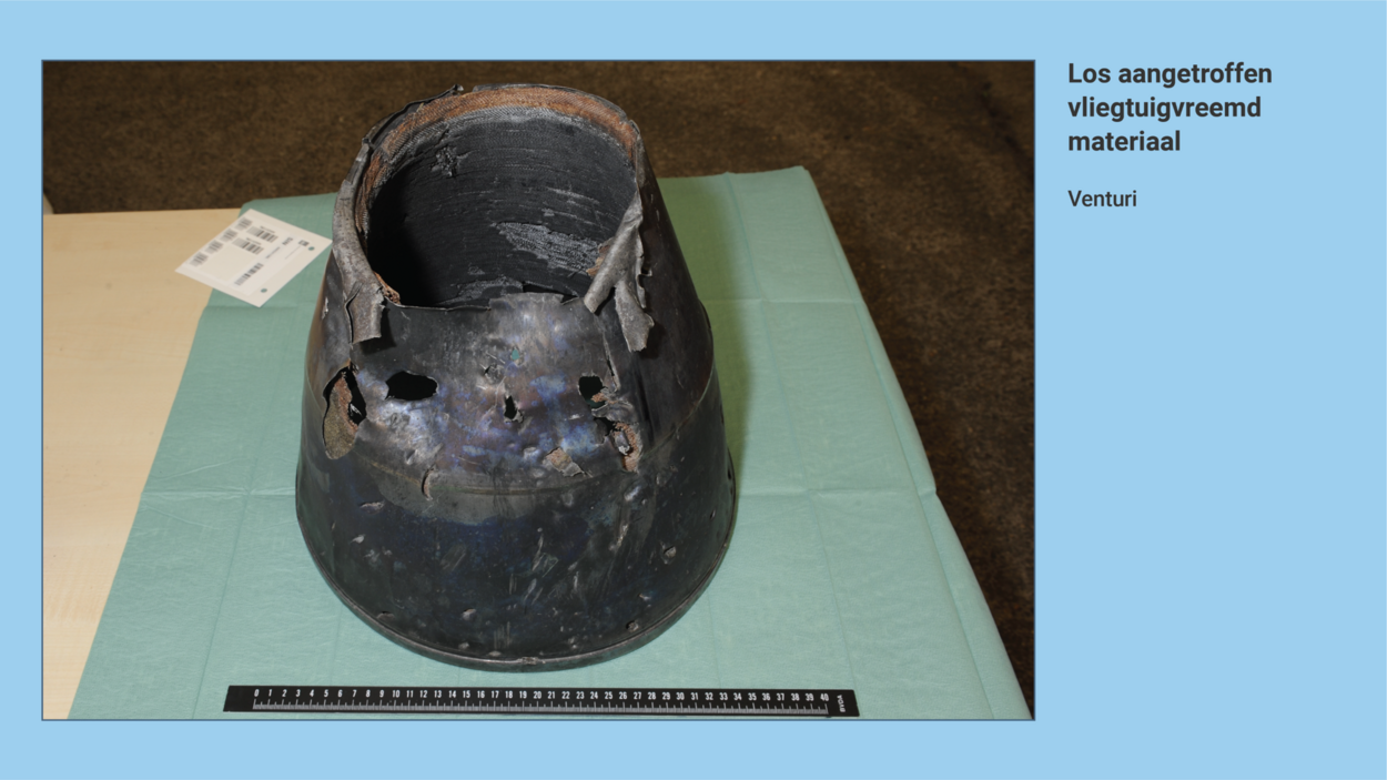 - In één van de bemanningsleden is een afwijkend deeltje aangetroffen dat vergeleken is met een de schuifplaat van een Buk-raket van de 9M38 serie.