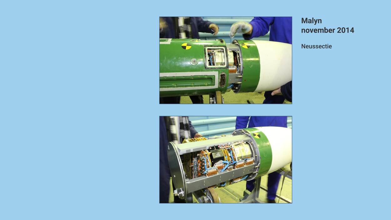 In de eerste helft van november 2014 zijn in Malyn de neussecties van beide raketten onderzocht. Deze neussectie bestaat uit twee delen, die met elkaar verbonden zijn door middel van een transitiering. Deze twee delen zijn van elkaar gescheiden, zodat de onderdelen die zich in de neussectie bevonden onderzocht konden worden. In de neussectie bevinden zich de automatische piloot en het systeem waarmee de raket naar het doel wordt geleid, met radar en antenne. Ook hiervan is referentiemateriaal veilig gesteld voor nader onderzoek. Na afloop van dit onderzoek zijn beide ontmantelde raketten naar Nederland gebracht. Daar zijn ze gebruikt voor vergelijkend onderzoek.