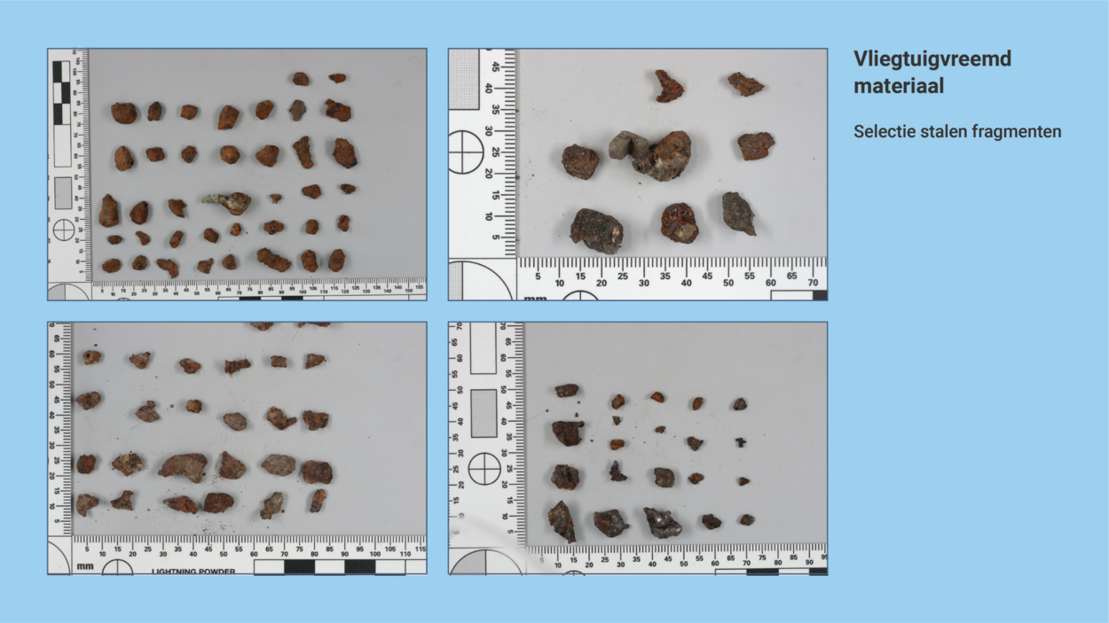 - onderzoek naar 341 stalen fragmenten die zijn aangetroffen in meerdere wrakdelen;