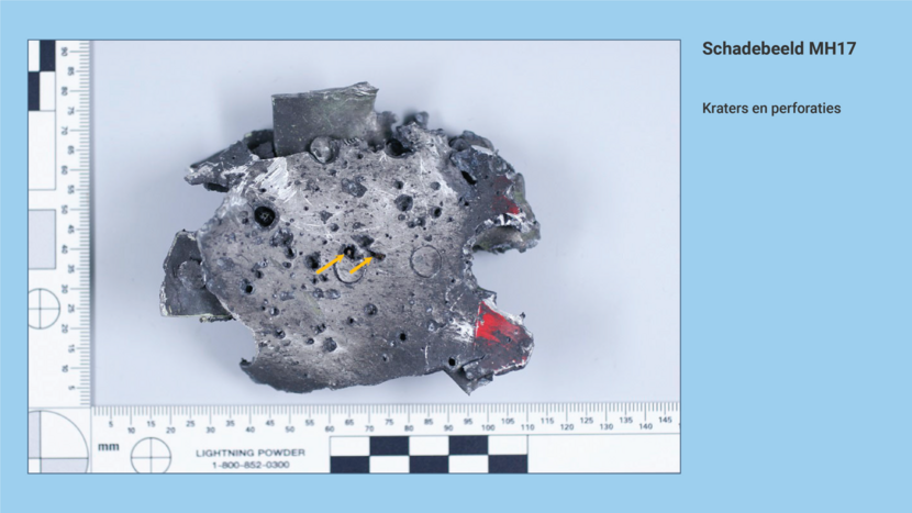 - onderzoek naar staalresten die in die kraters en perforaties zijn aangetroffen;