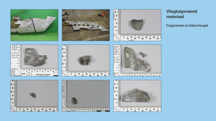 - de vliegtuigvreemde materialen die zijn aangetroffen in de wrakdelen van MH17;