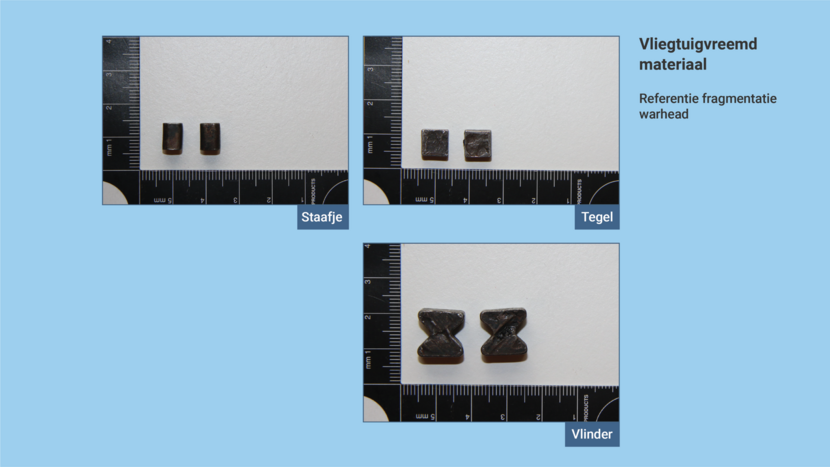 - vergelijking van de kenmerken (waaronder elementsamenstelling, vorm, fabricagesporen en verf) van andere, vliegtuigvreemde delen met die van verschillende onderdelen van Buk-raketten van typen 9M38 en 9M38M1.