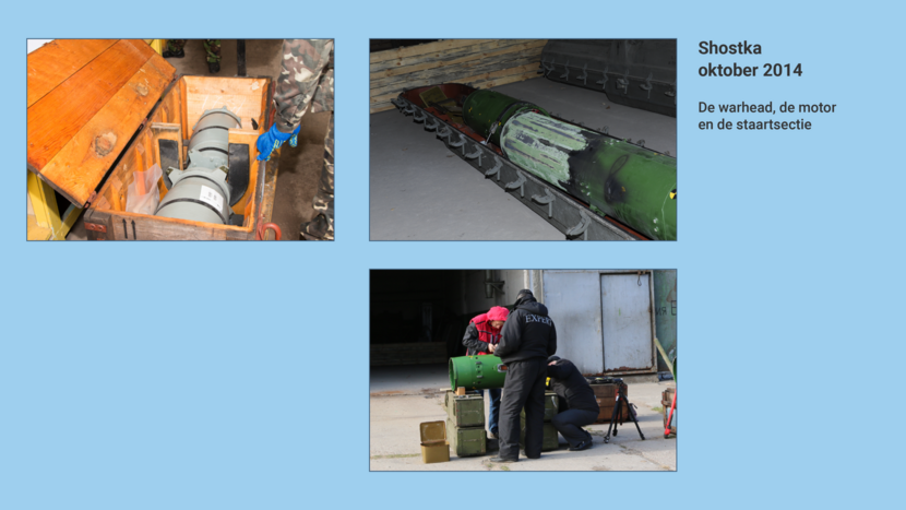 Vervolgens is er eind oktober 2014 in Shostka aan drie van de vier onderdelen nader onderzoek verricht. Het betrof de warhead, de motor en de staartsectie van beide raketten.