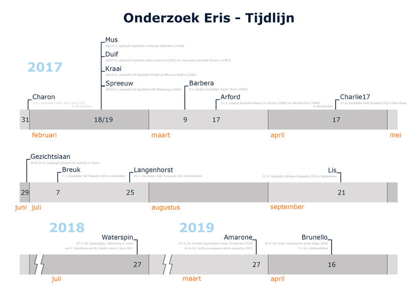 Het proces Eris gaat inmiddels over 11 moordopdrachten, waarvan er 5 zijn voltooid.