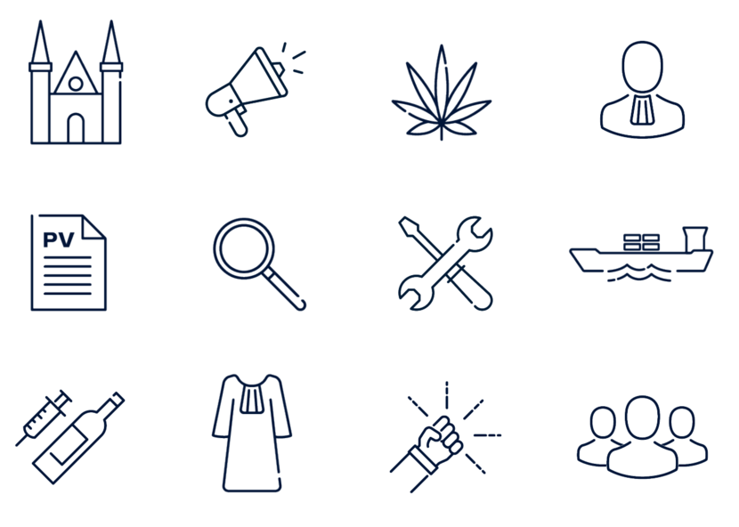 Het OM maakt gebruik van eigen iconen. Deze open en vriendelijke iconen werken vooral op groot formaat. In combinatie met tekst kunnen ze voor herkenning zorgen.