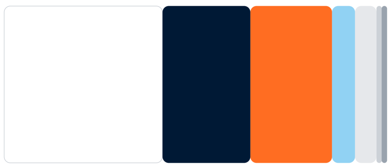Wit is de basis in alle uitingen. Dit geeft het geheel een frisse uitstraling. Naast wit worden de kleuren donkerblauw en oranje evenredig gebruikt. Lichtblauw en de drie donkerblauwe tinten worden als accent kleur gebruikt en voeren nooit de boventoon.